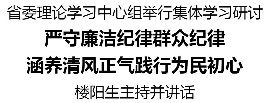 6月7日,省委理論學(xué)習(xí)中心組舉行集體學(xué)習(xí)研討,繼續(xù)深入學(xué)習(xí)《中國共產(chǎn)黨紀律處分條例》,重點圍繞廉潔紀律、群眾紀律進行研讀。省委書記樓陽生主持并講話。