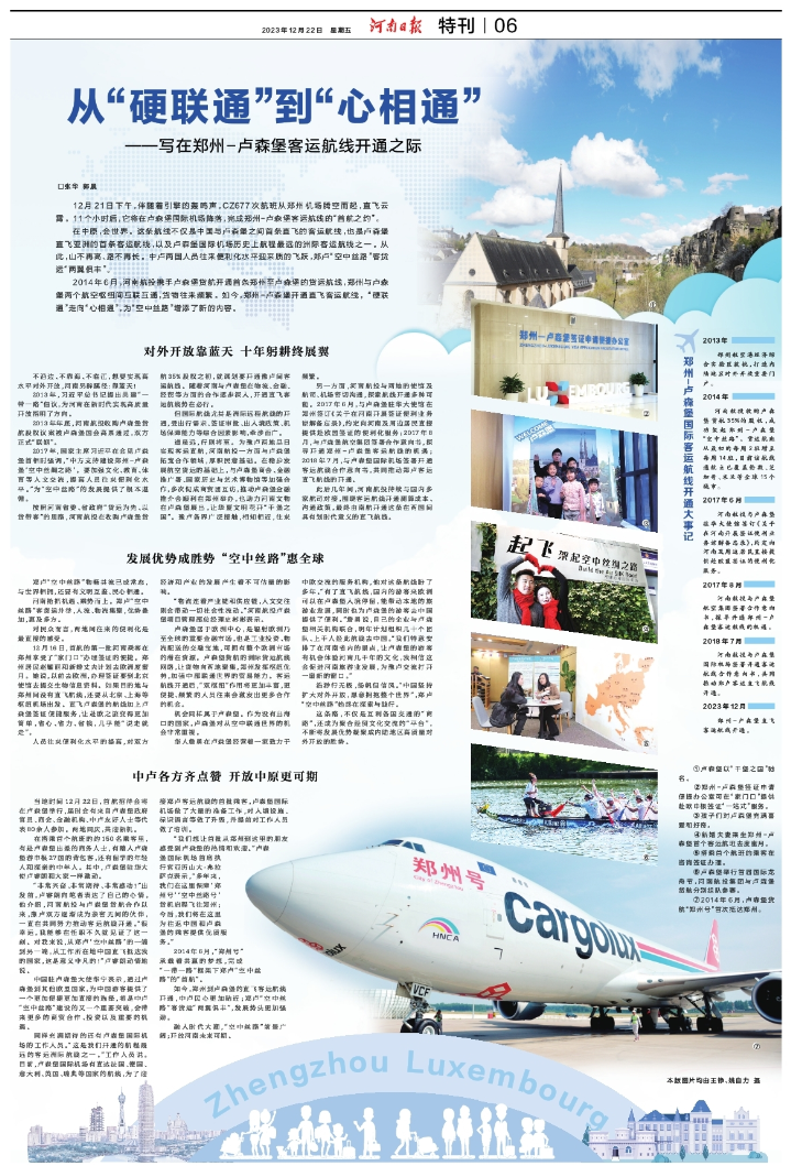 從“硬聯(lián)通”到“心相通”——寫在鄭州-盧森堡客運(yùn)航線開通之際