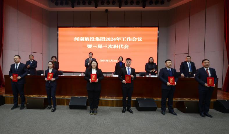 2月3日,河南航投集團2024年工作會議暨三屆三次職代會在航空經(jīng)濟服務中心召開。集團黨委書記、董事長張明超在會上作《奮力奪取航空經(jīng)濟高質(zhì)量發(fā)展新勝利》工作報告。黨委副書記、工會主席郭艷紅作工會工作報告。副總經(jīng)理吳慶格主持會議并提出貫徹落實會議精神的要求。副總經(jīng)理劉霞宣讀評先表彰決定,副總經(jīng)理渠長振、喬長恩共同頒獎。集團中層管理人員、職工代表參會。