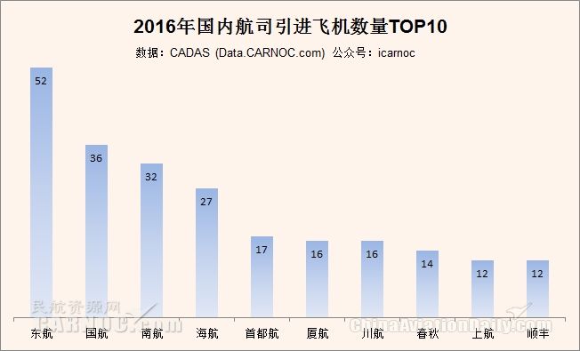 在航空公司中,東航引進(jìn)的飛機(jī)最多,為52架,國(guó)航36架、南航32架。